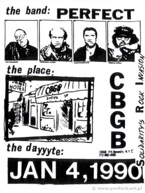 Info: W 1989 roku Zbigniew Hołdys reaktywował Perfect na tournee po USA bez Grzegorza Markowskiego w składzie: Zbigniew Hołdys (śpiew, gitara), Piotr Szkudelski (perkusja), Mieczysław Jurecki (gitara basowa), Jacek Krzaklewski (gitara). W USA odmieniony Perfect zagrał szereg koncertów w amerykańskich klubach w Nowym Jorku, Los Angeles (Whiskey Go Go) i San Francisco. Perfect wystąpił jako pierwszy zespół z Europy Środkowej w legendarnym klubie CBGB's (Nowy Jork). Skutkiem koncertów granych wyłącznie dla amerykańskiej publiczności były znakomite recenzje w mediach (telewizja ABC, dziennik New York Times, magazyny "Newsweek", "Village Voice", i "Spin"). Z tego okresu pochodza m.in. anglojęzyczne wersje utworów "Po co?" ("What For"), "Niewiele Ci mogę dać" ("I wish I could give you more") oraz "Ale w koło jest wesoło" ("Golly Gee The Ball is Rolling") nagrane w Studio Platinium Island przez Boba Musso -producenta Metallici, Iggy Popa, Micka Jaggera.